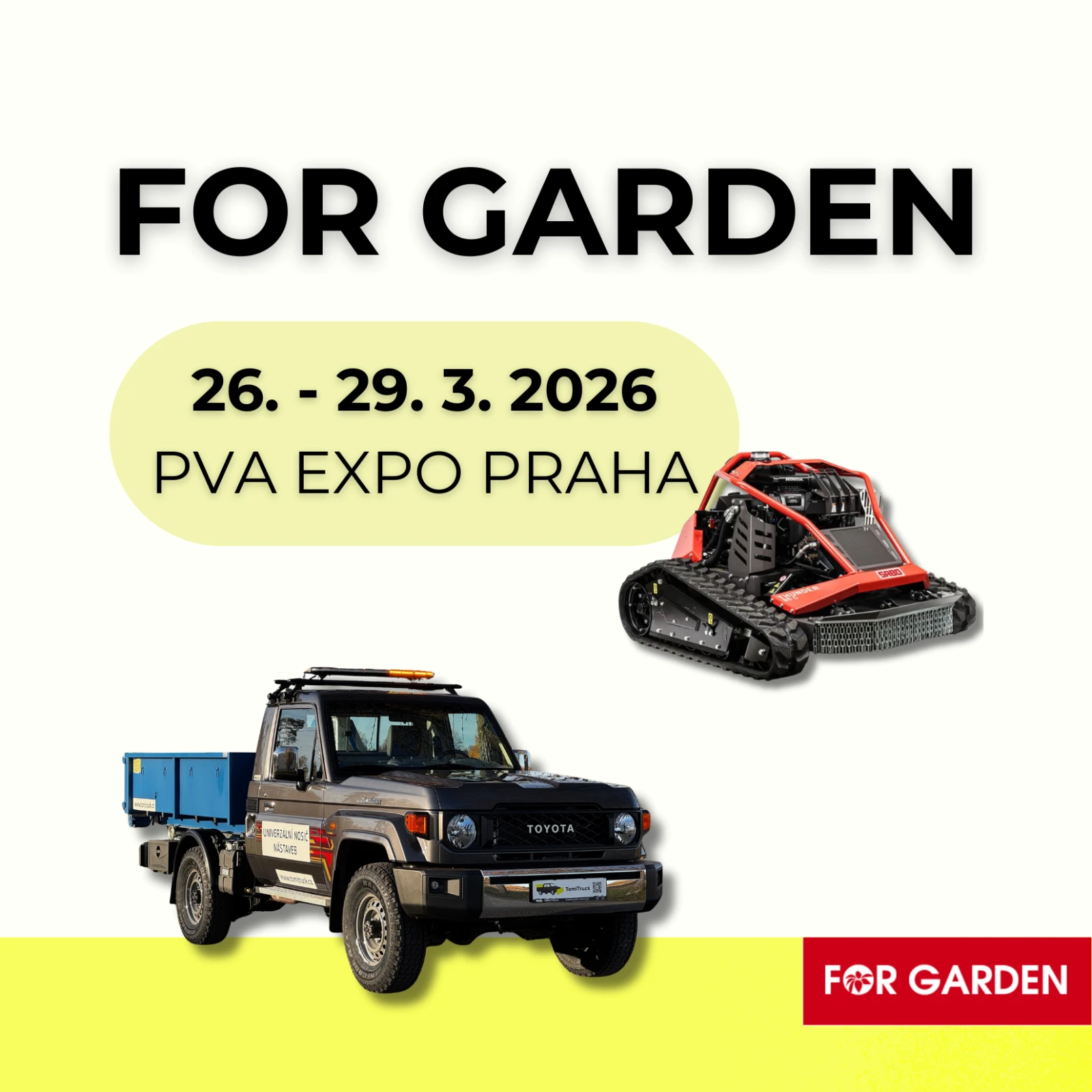 Na výstavní ploše nebude chybět ani naše nabídka komunálních vozidel Toyota a Ford, která nabízíme s různými nástavbami. Jedná se o varianty třístranný sklápěč, hydraulickou ruku či nosič kontejnerů.